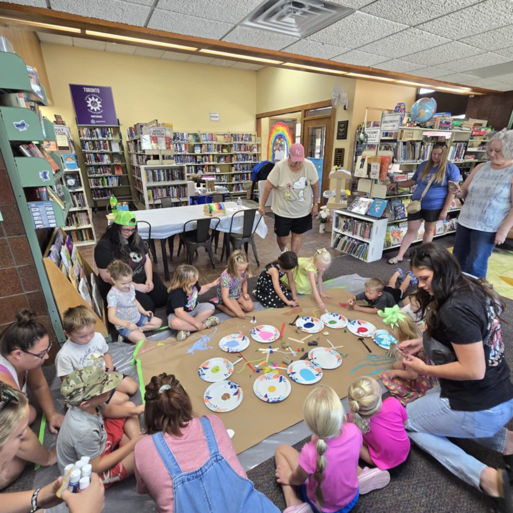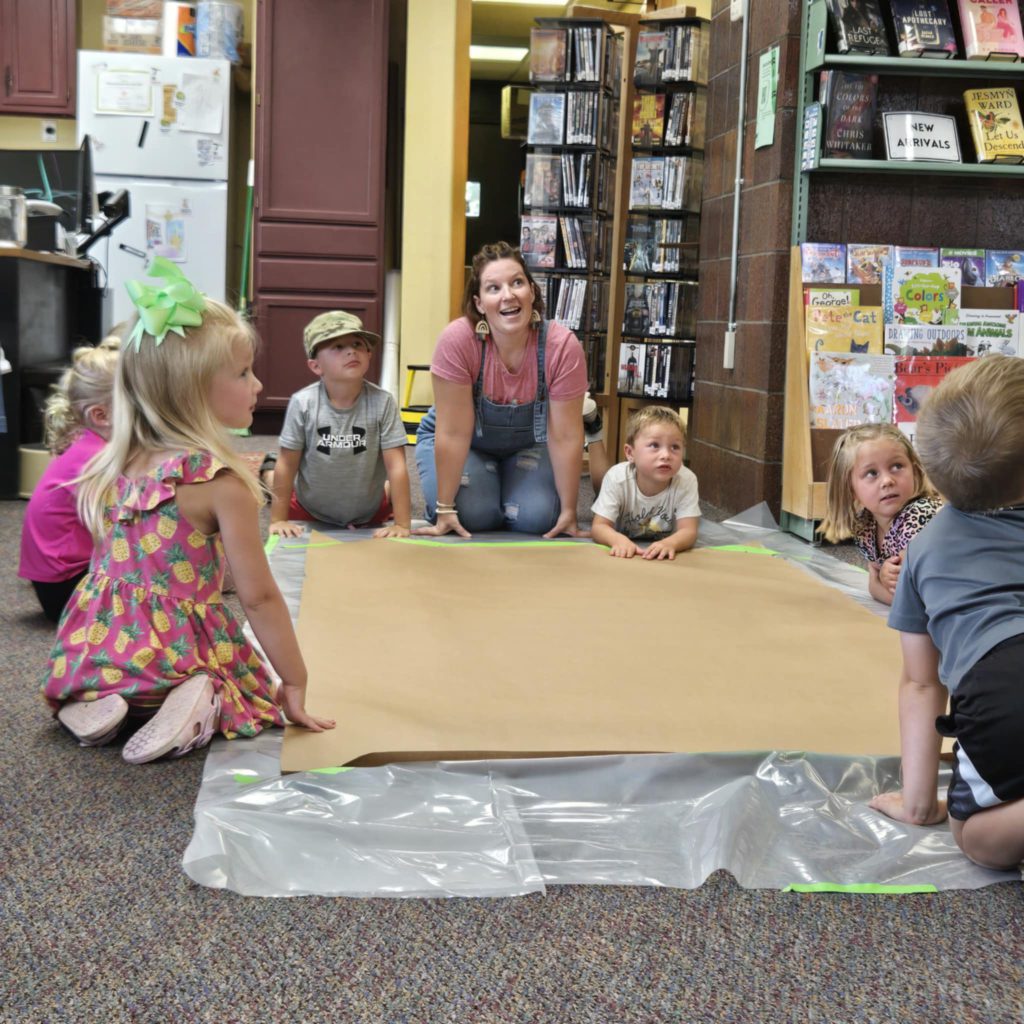 Our painting story hour with Ms Kathe was so fun! We had a big group join us, and we enjoyed the process! We read a great book together, Time to Make Art by Jeff Mack. I highly recommend this book! They loved it! We explored lots of textures, painting with “anything but a paintbrush”. Then, we used cotton balls and little hammers to make flower paintings! SO FUN!
