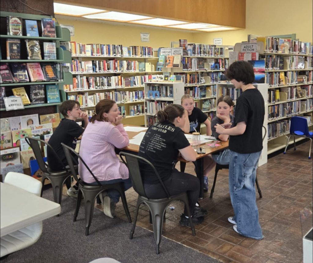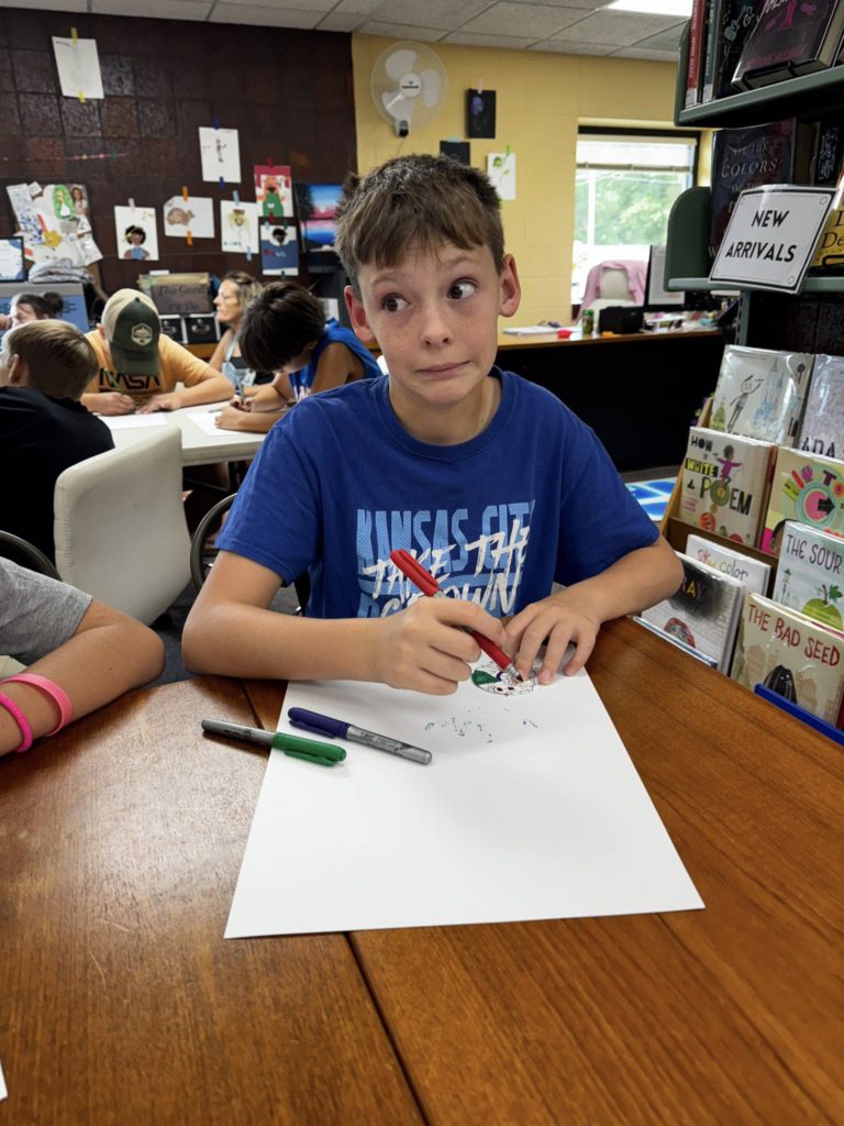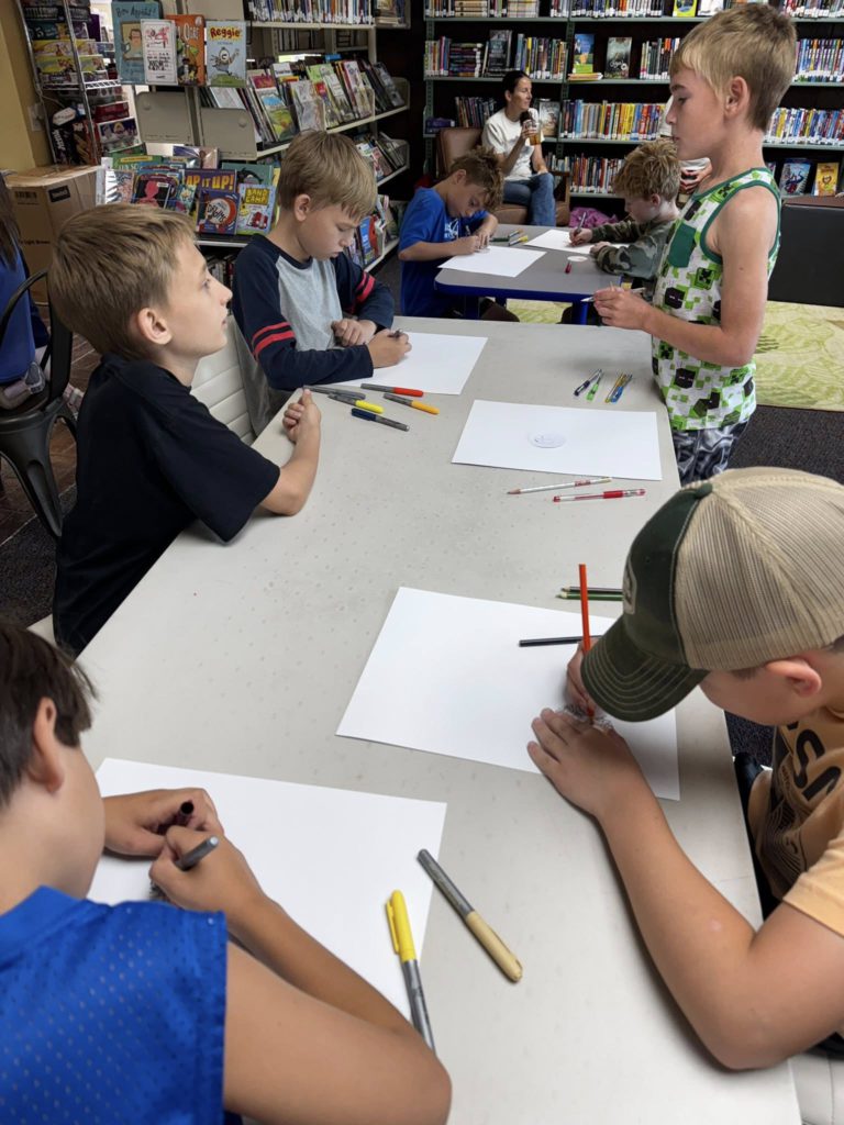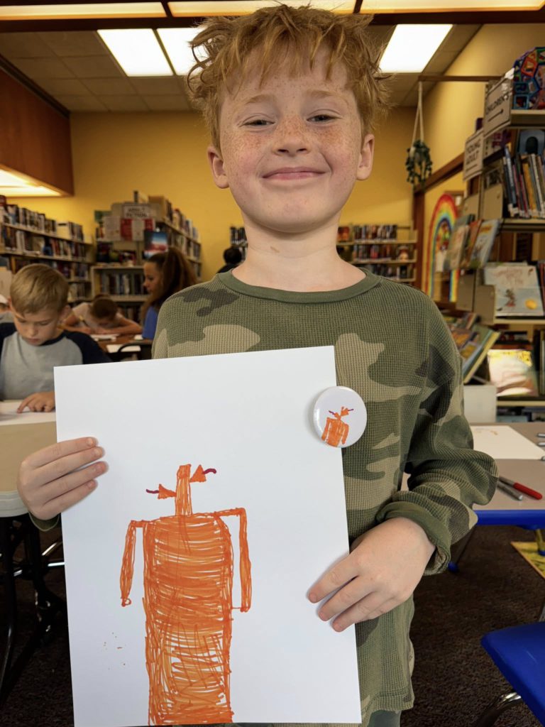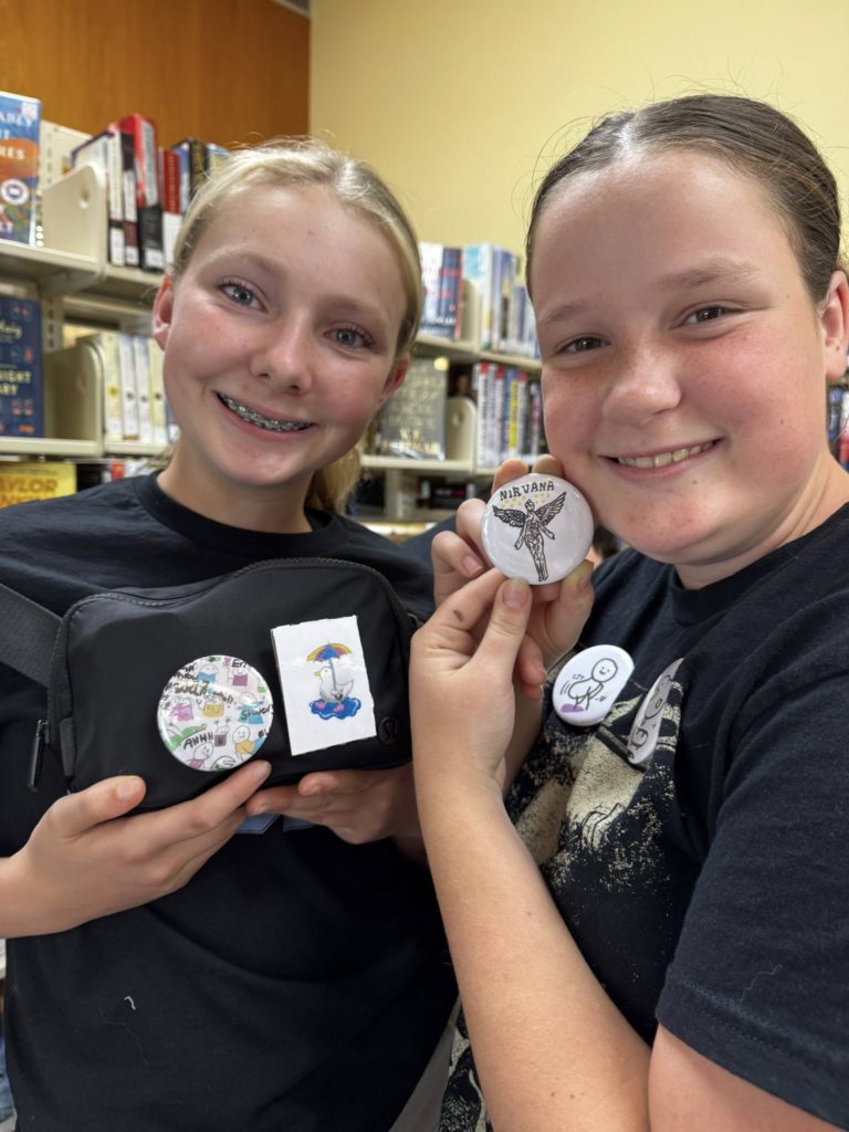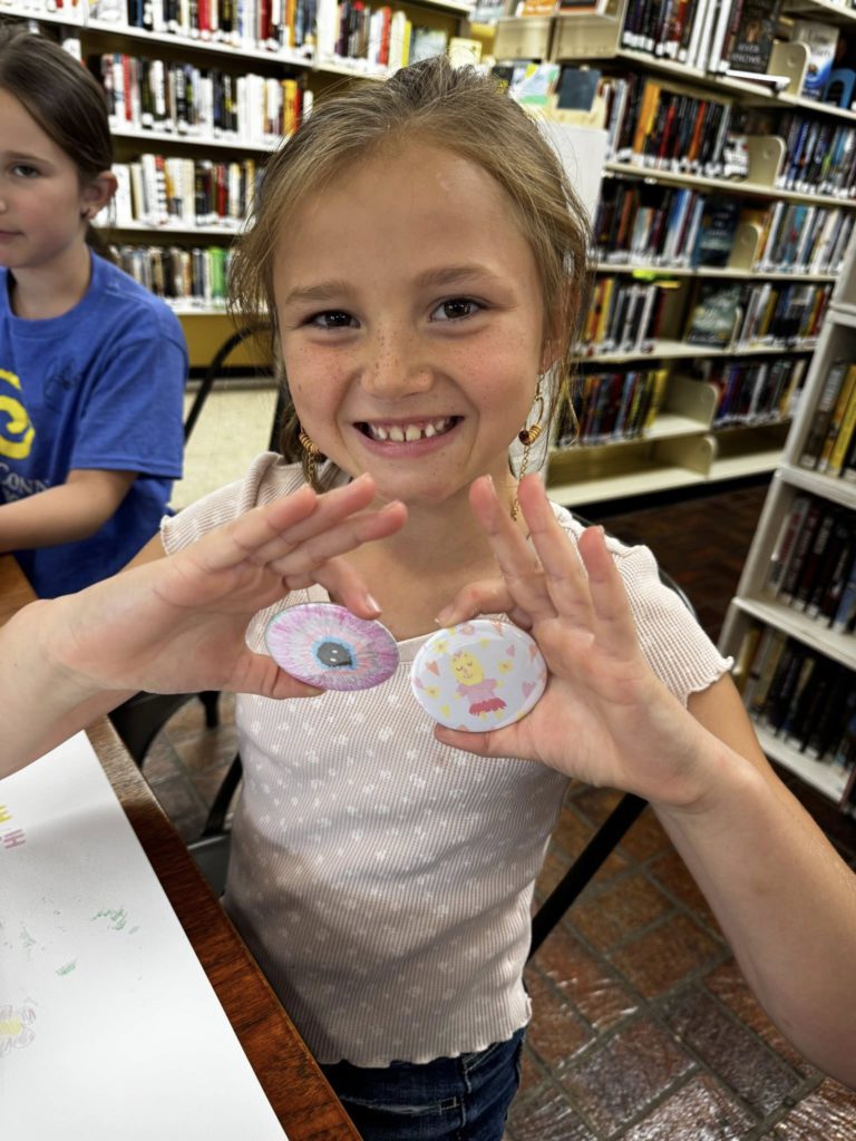 We had such a fun day! Helena Wang and Natalie Spangenberg came in to teach us how to turn our art into custom buttons. The Middles went first, and we had quite a crowd! Many of them were excited to make pins for their backpacks. Our Teens experimented with two styles of pins. Their art was so fun and they’re a very funny group. Helena is a very talented artist and we can’t wait to have them both back!