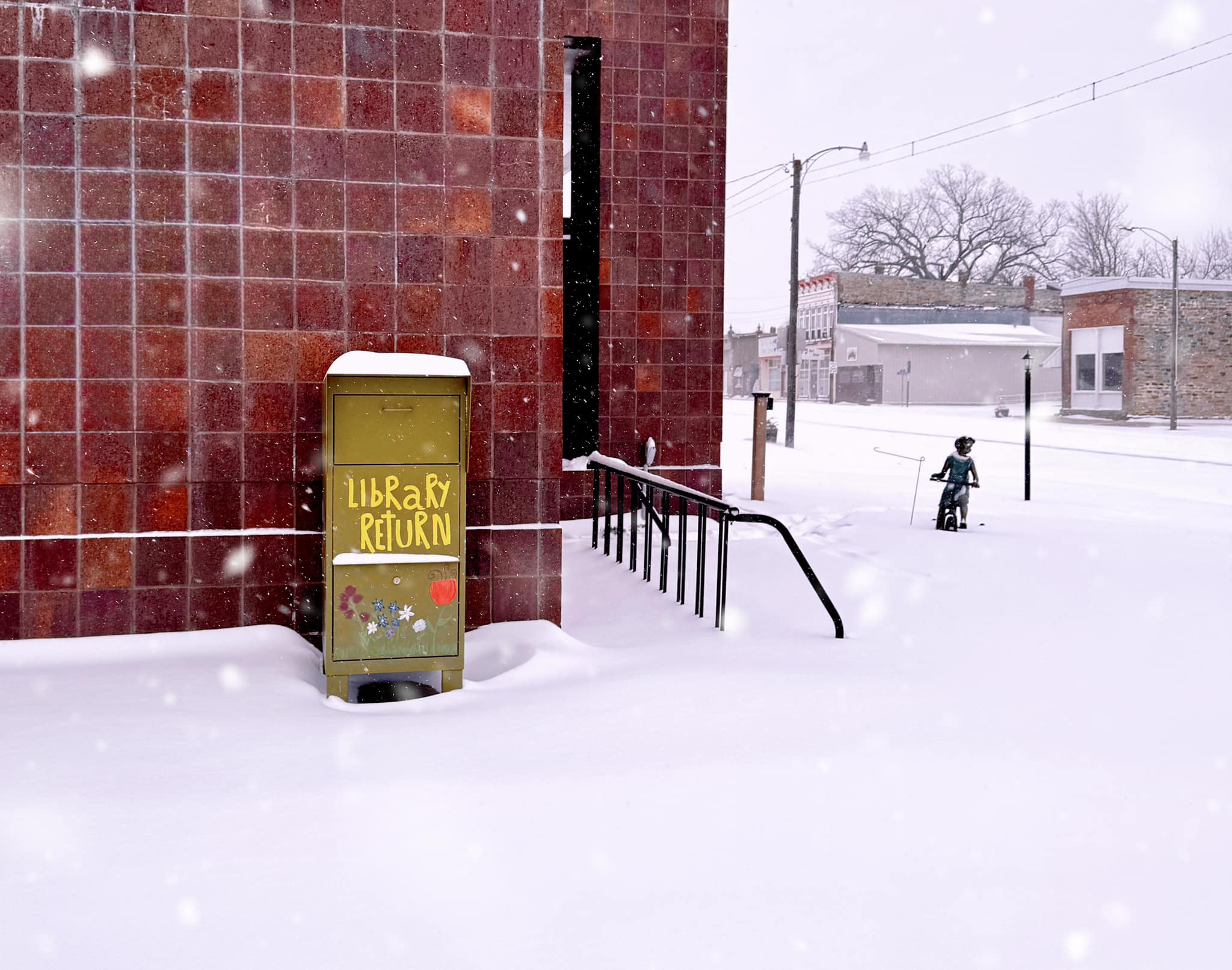The snow is still blowing, and it’s getting dangerously cold. The library is closed again tomorrow. We came to town to check on a few folks, but we are headed back home to hunker down. Please stay safe, and check on your neighbors if you can.