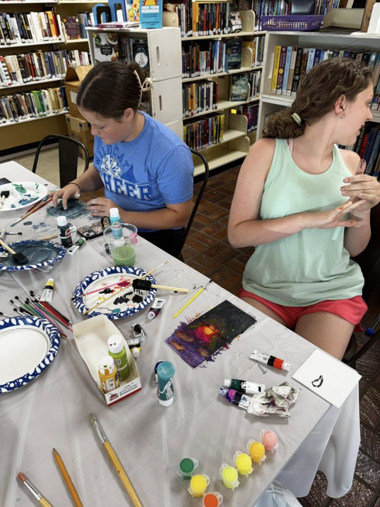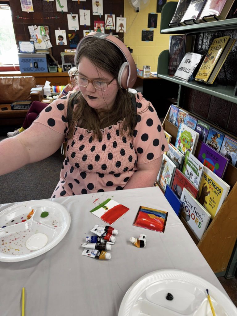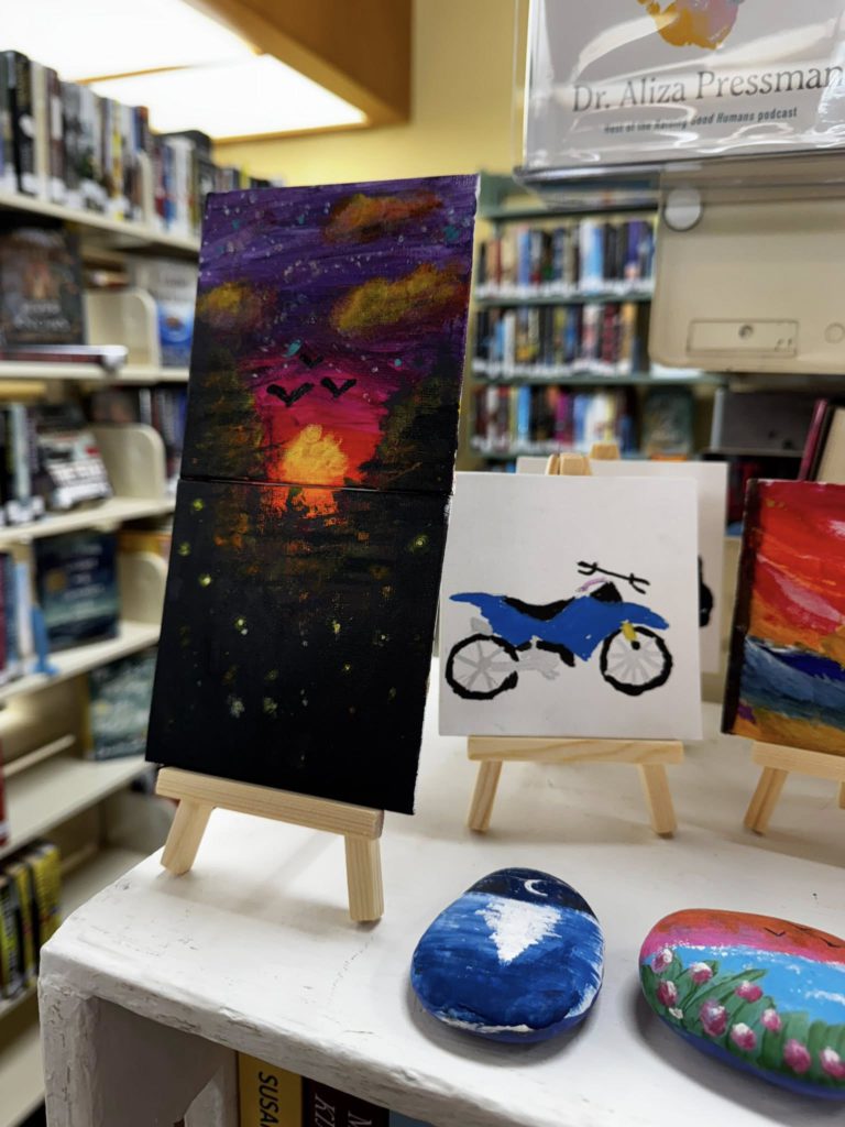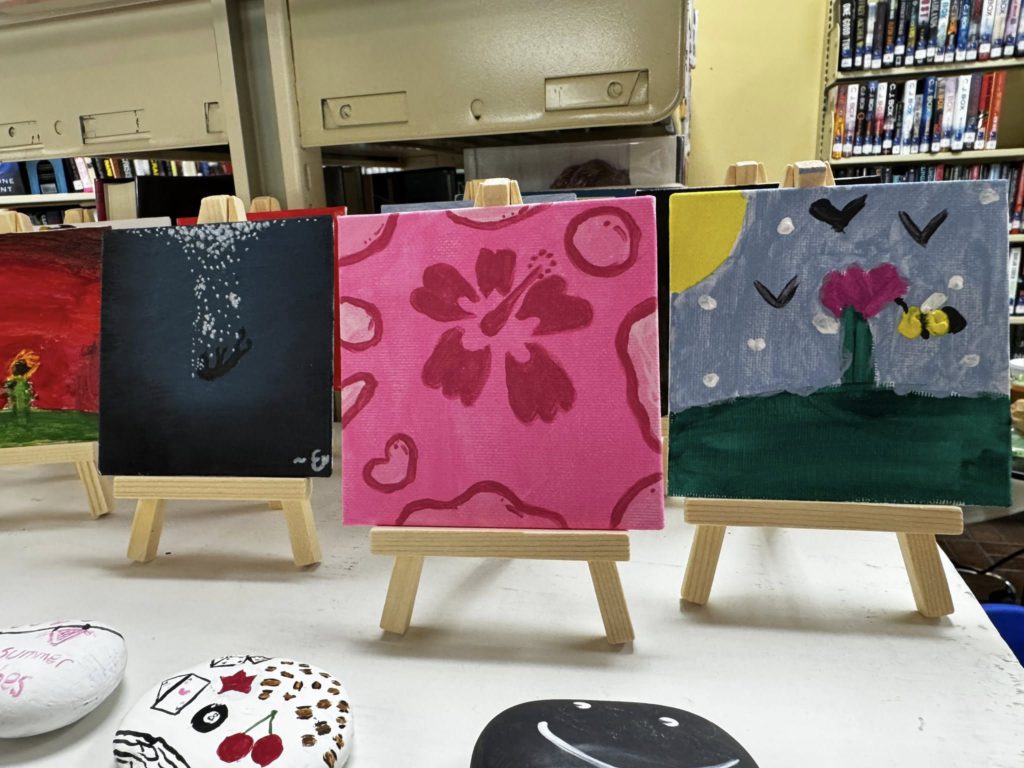 We had a very talented bunch of teens (and a few tweens) for mini canvases painting this afternoon. You can view their tiny art show for the next couple of weeks when you come see us! I didn’t get photos of all of them or of all the kids. It was a busy day!