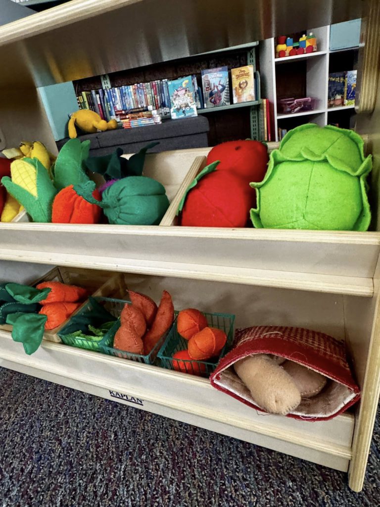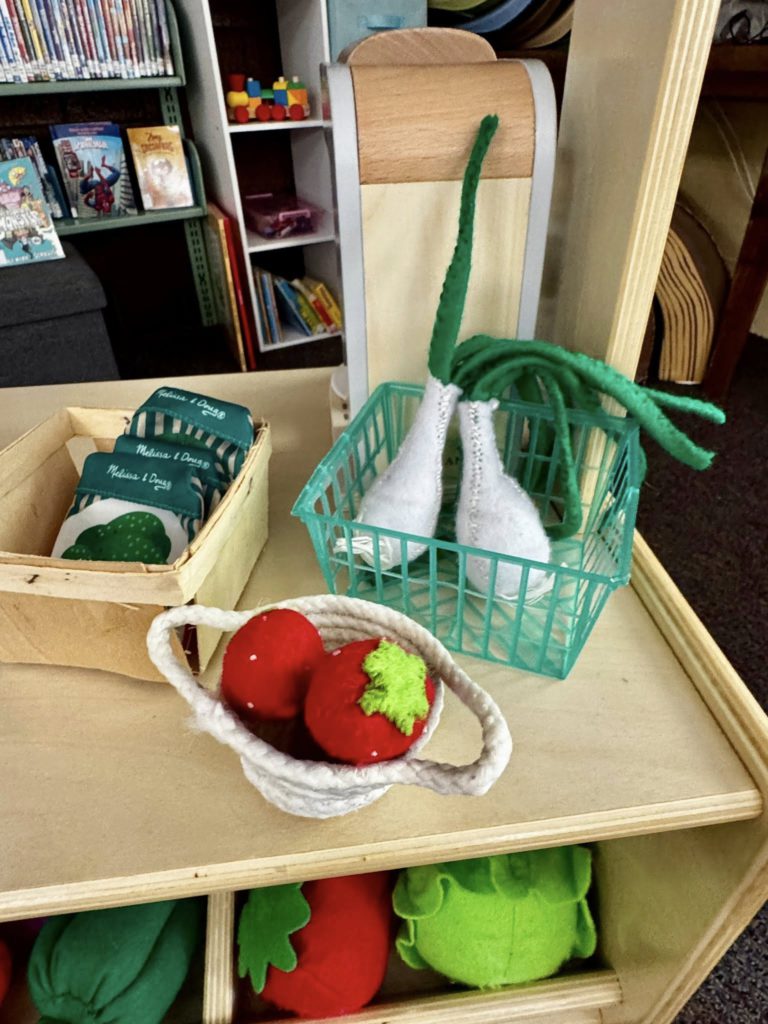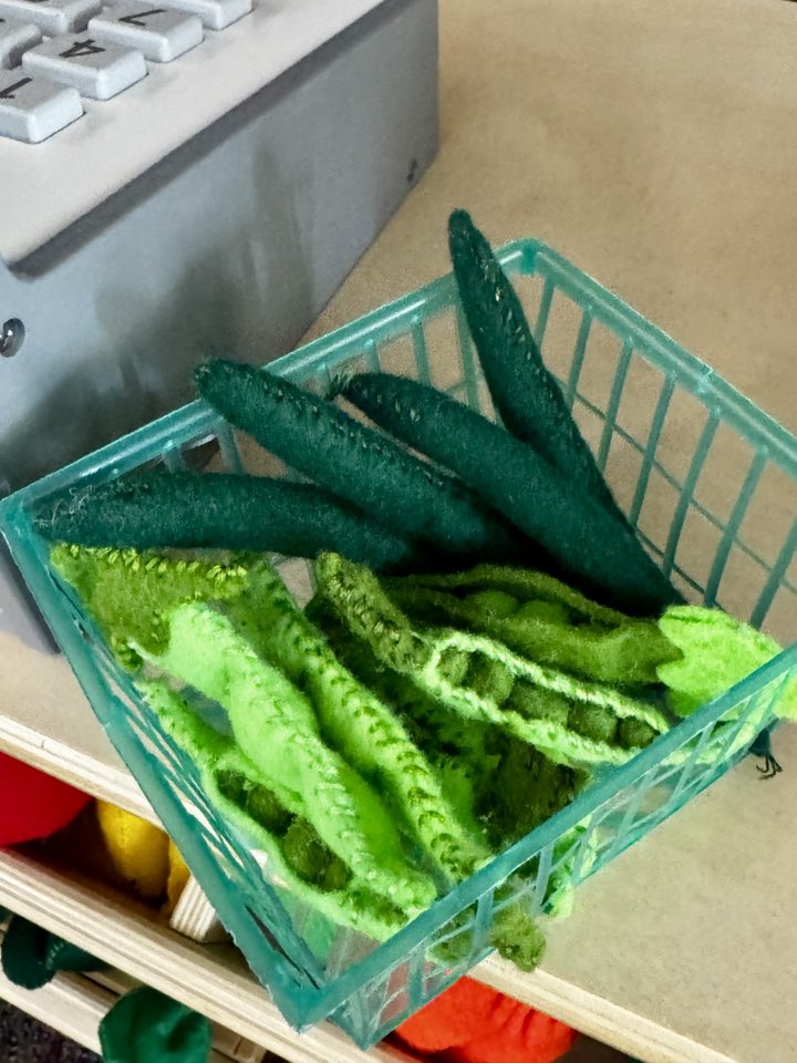 You guys! My friend Kristen Conkle MADE these little felt fruits and veggies! I’m so blessed to have such generous and talented friends! Thank you Kris for bringing us this awesome donation! I rotated our flower shop out today, and I can’t wait for the kiddos to see this! The little sack of potatoes and pea pods… I can’t!